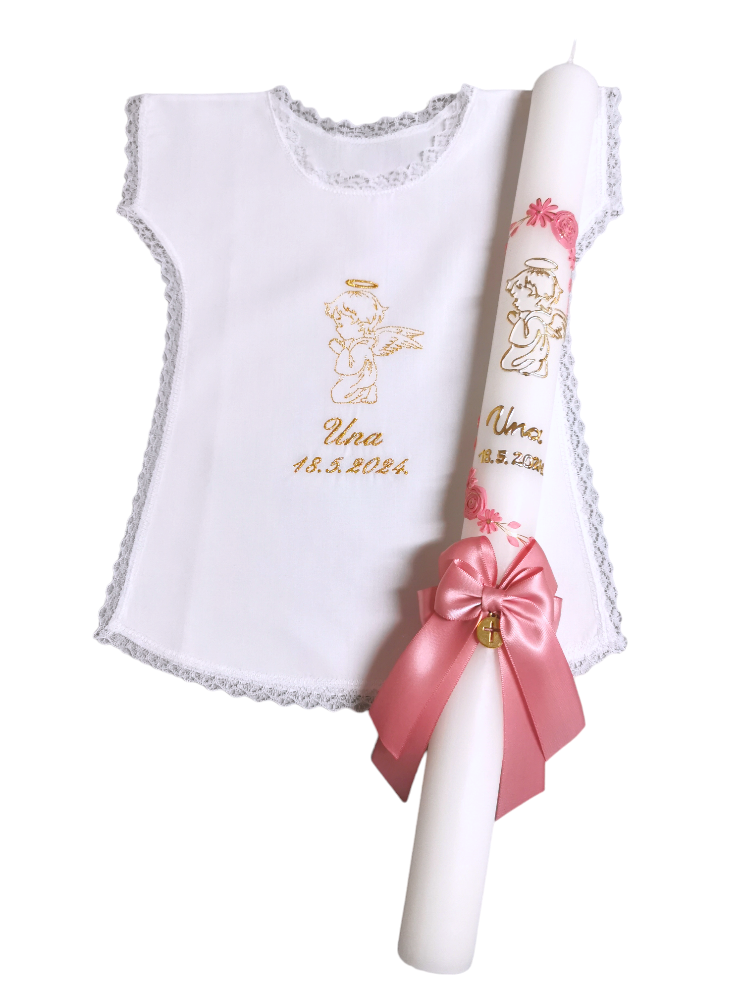 Budite spremni za velik dan Vašeg mališana. Izaberite između velike ponude krsnih kompleta ili pak izaberite svaki proizvod pojedinačno. Svi naši krsni kompleti, kao i pojedinačni proizvodi za krštenje nude velik broj opcija, od motiva, boja pa sve do natpisa. Tako možete birati razne motive na krsnim košuljicama i rupčićima, natpise različitih boja, te boje koje će se nalaziti na svijeći. Naše krsne svijeće ručni su rad, te svaka od njih može biti personalizirana i jedinstvena. Sve zbog toga kako bi Vi mogli izabrati savršen krsni komplet za Vaše dijete.