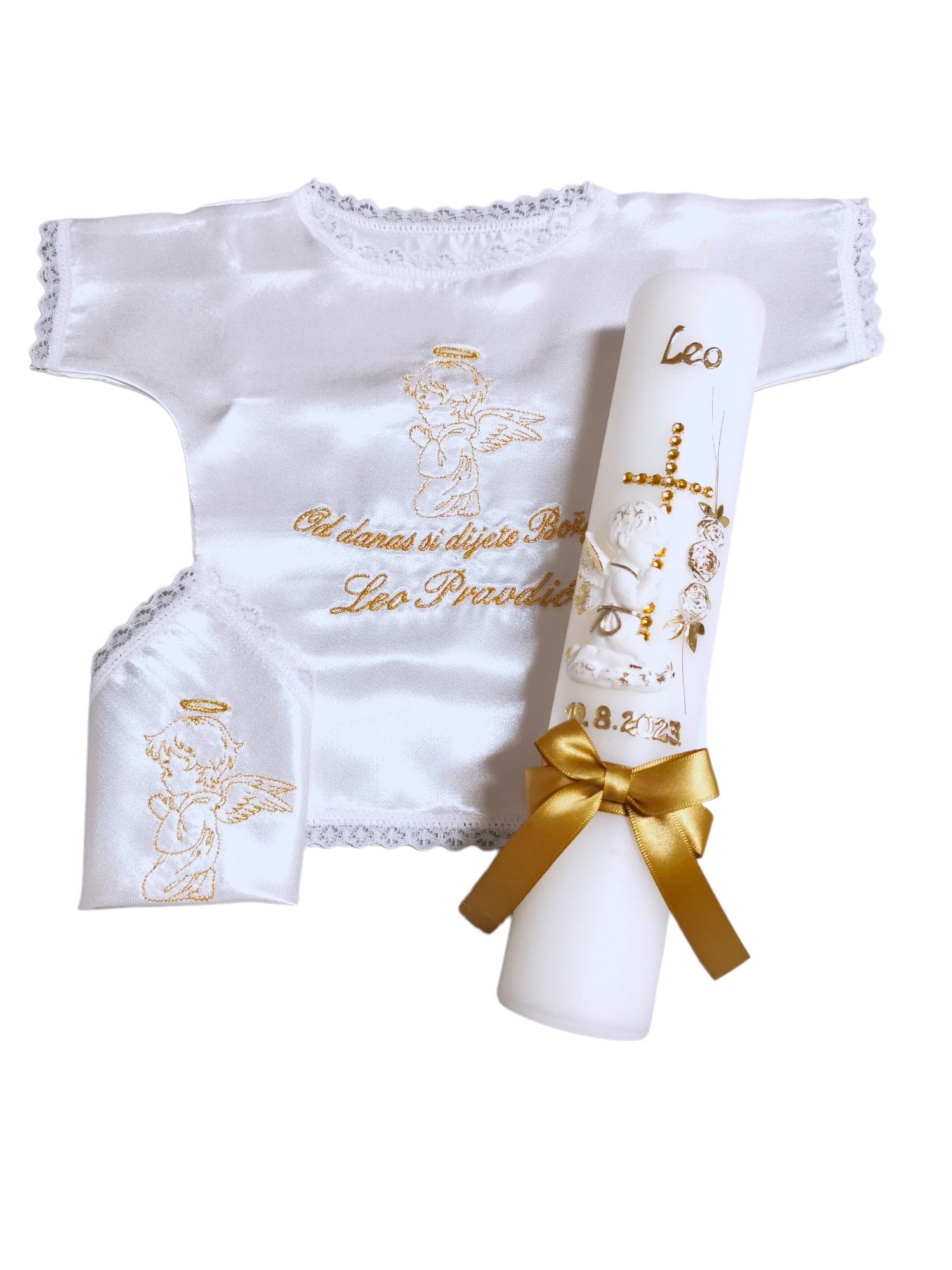 Budite spremni za velik dan Vašeg mališana. Izaberite između velike ponude krsnih kompleta ili pak izaberite svaki proizvod pojedinačno. Svi naši krsni kompleti, kao i pojedinačni proizvodi za krštenje nude velik broj opcija, od motiva, boja pa sve do natpisa. Tako možete birati razne motive na krsnim košuljicama i rupčićima, natpise različitih boja, te boje koje će se nalaziti na svijeći. Naše krsne svijeće ručni su rad, te svaka od njih može biti personalizirana i jedinstvena. Sve zbog toga kako bi Vi mogli izabrati savršen krsni komplet za Vaše dijete.