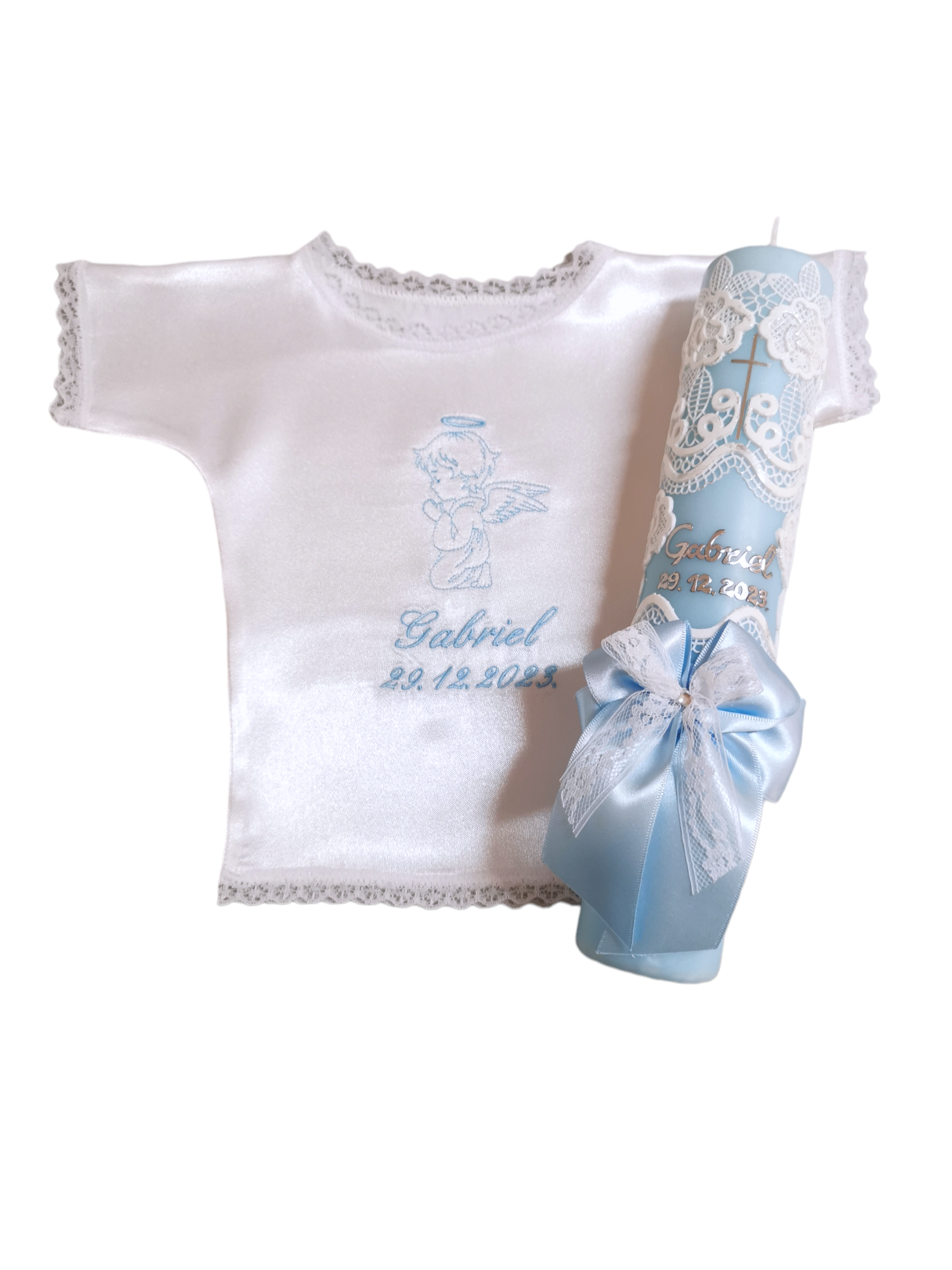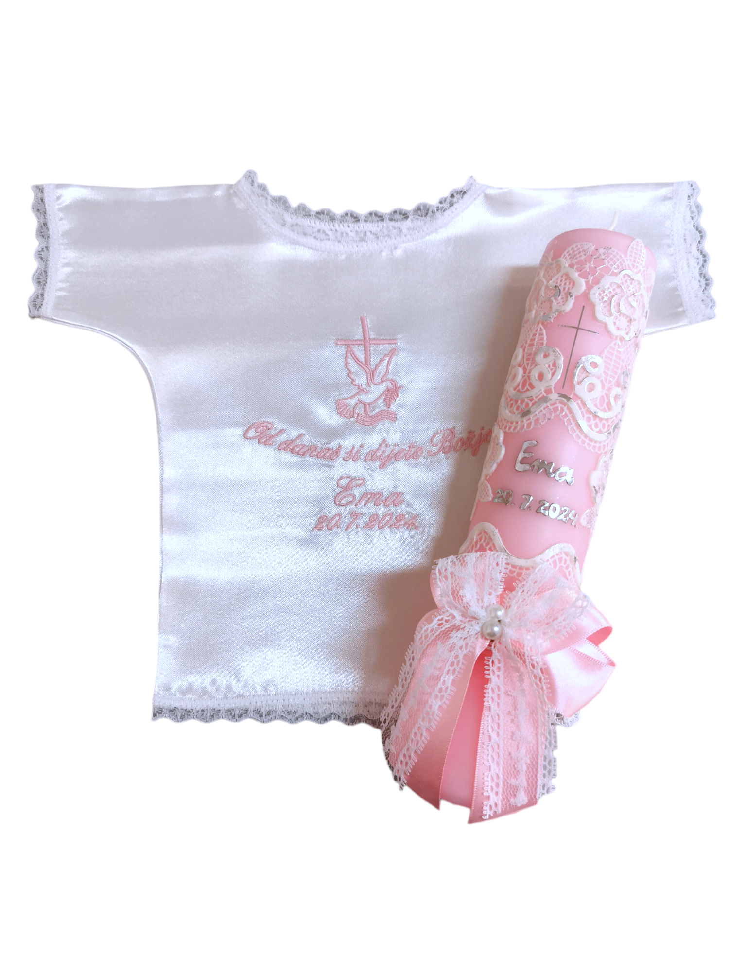 Budite spremni za velik dan Vašeg mališana. Izaberite između velike ponude krsnih kompleta ili pak izaberite svaki proizvod pojedinačno. Svi naši krsni kompleti, kao i pojedinačni proizvodi za krštenje nude velik broj opcija, od motiva, boja pa sve do natpisa. Tako možete birati razne motive na krsnim košuljicama i rupčićima, natpise različitih boja, te boje koje će se nalaziti na svijeći. Naše krsne svijeće ručni su rad, te svaka od njih može biti personalizirana i jedinstvena. Sve zbog toga kako bi Vi mogli izabrati savršen krsni komplet za Vaše dijete.