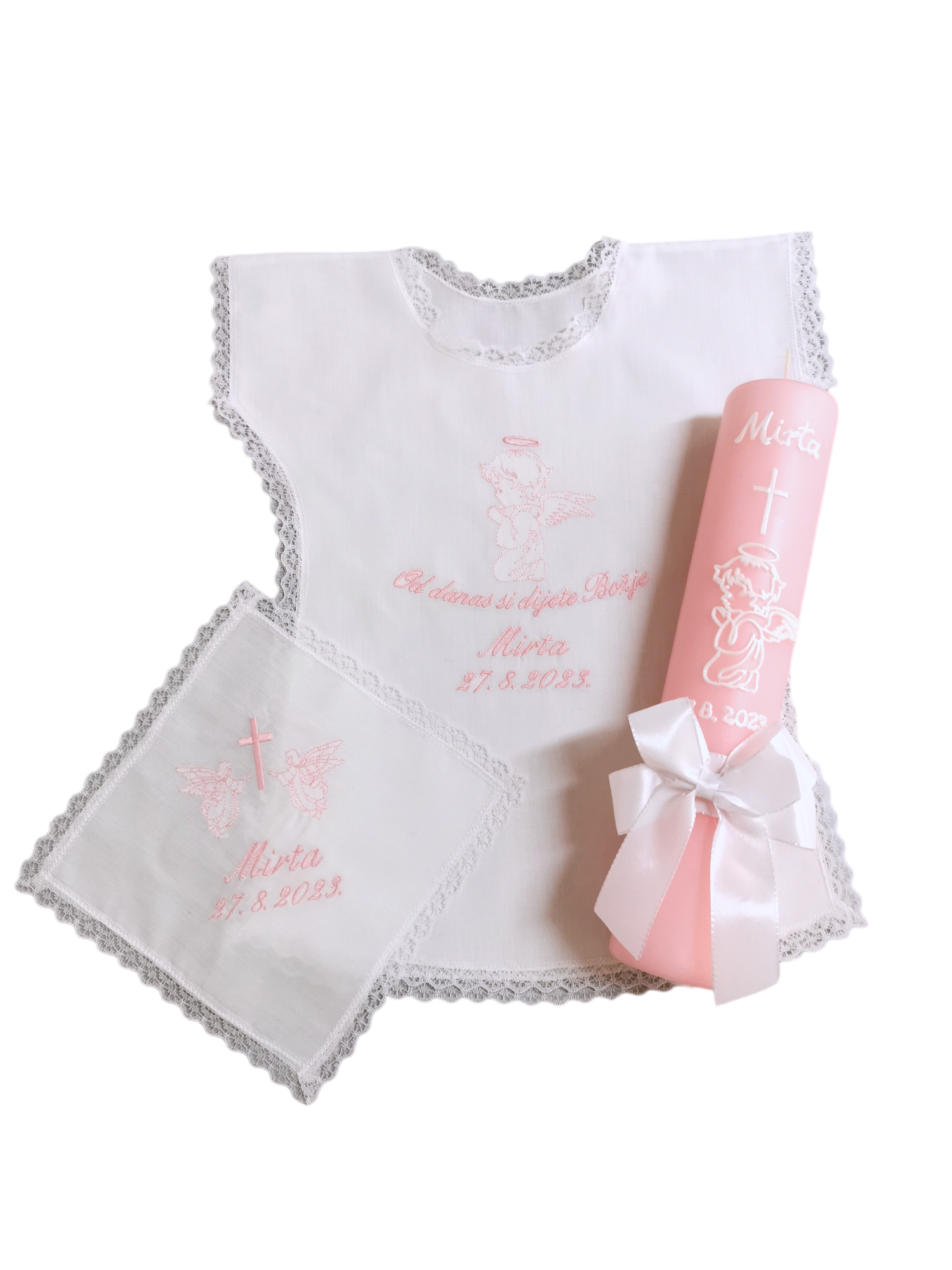 Budite spremni za velik dan Vašeg mališana. Izaberite između velike ponude krsnih kompleta ili pak izaberite svaki proizvod pojedinačno. Svi naši krsni kompleti, kao i pojedinačni proizvodi za krštenje nude velik broj opcija, od motiva, boja pa sve do natpisa. Tako možete birati razne motive na krsnim košuljicama i rupčićima, natpise različitih boja, te boje koje će se nalaziti na svijeći. Naše krsne svijeće ručni su rad, te svaka od njih može biti personalizirana i jedinstvena. Sve zbog toga kako bi Vi mogli izabrati savršen krsni komplet za Vaše dijete.