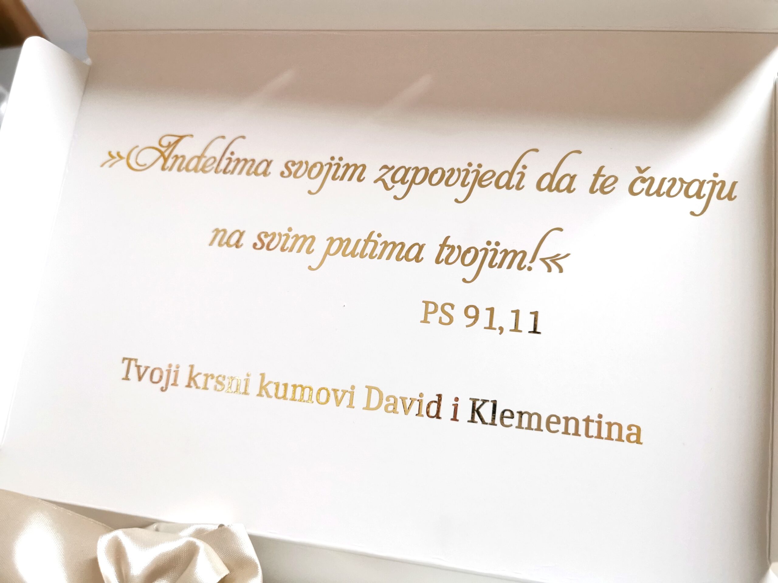 Kutija: bijela sa bijelom satenskom ukrasnom mašnom