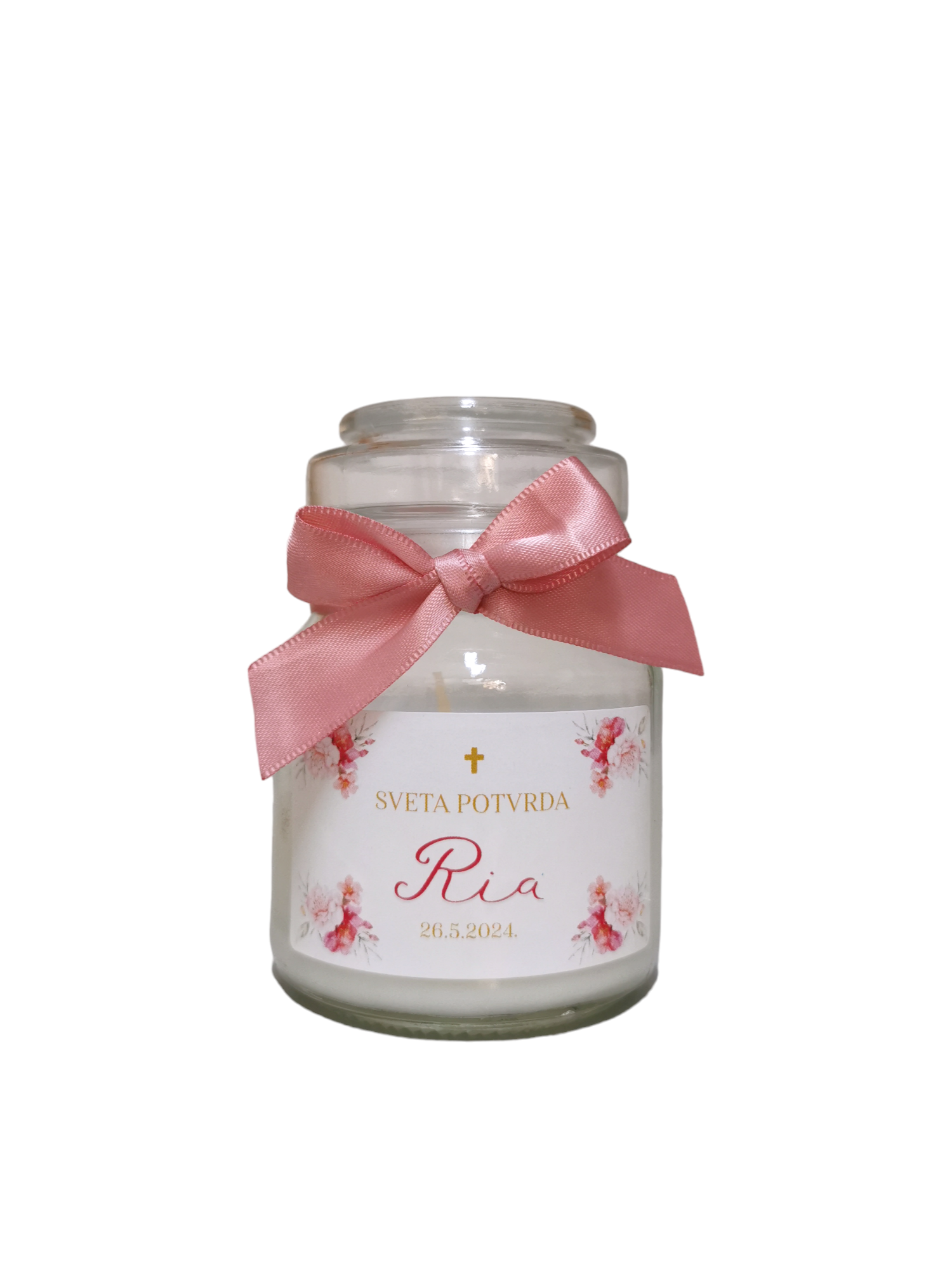 Naša mirisna poklon svijeća u staklenci, s pomno biranim mirisima, kreirana je kako bi u svakom domu stvorile ugodnu i opuštajuću atmosferu te da ostane uspomena gostima ili kumovima kojima ćete je pokloniti. Najdraže trenutke provedene s obitelji i prijateljima uljepšaj uz mirisne svijeće i stvori nezaboravne uspomene, kojih ćeš se rado prisjećati svakom ponovno zapaljenom svijećom. Mirisna staklenka napravljena je od najkvalitetnijih sirovina s potpuno prirodnim pamučnim fitiljem. Uživaj u najljepšim mirisima gotovo 28 sati, koliko je vrijeme gorenja ovog proizvoda.