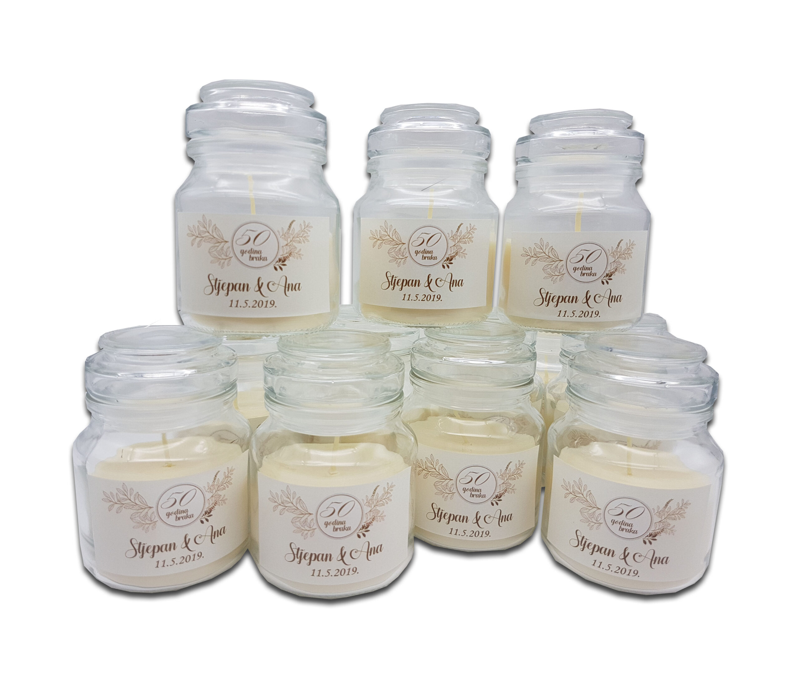 Mirisne svijeće donose dozu originalnosti i kreativnosti koju će mnogi upravo povezati s Vama. Odaberite Vama najdraži miris te uživajte u očaravajućim i opuštajućim ljepotama koji će zasigurno oduševiti vas i vaše goste/kumove.