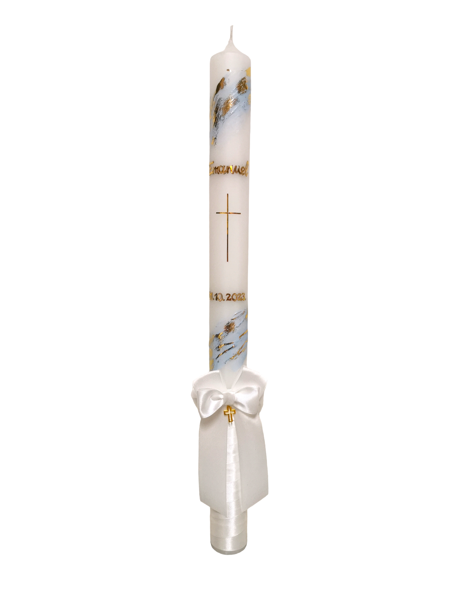Svijeća: napravljena je od kvalitetnog parafinskog voska, ručno rađenih ukrasa i detalja prilagođenim Vama kako bi Vašem djetetu ostala trajna uspomena na tako poseban i velik dan!