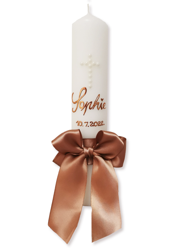 Svijeća: napravljena je od kvalitetnog parafinskog voska, ručno rađenih ukrasa i detalja prilagođenim Vama kako bi Vašem djetetu ostala trajna uspomena na tako poseban i velik dan!