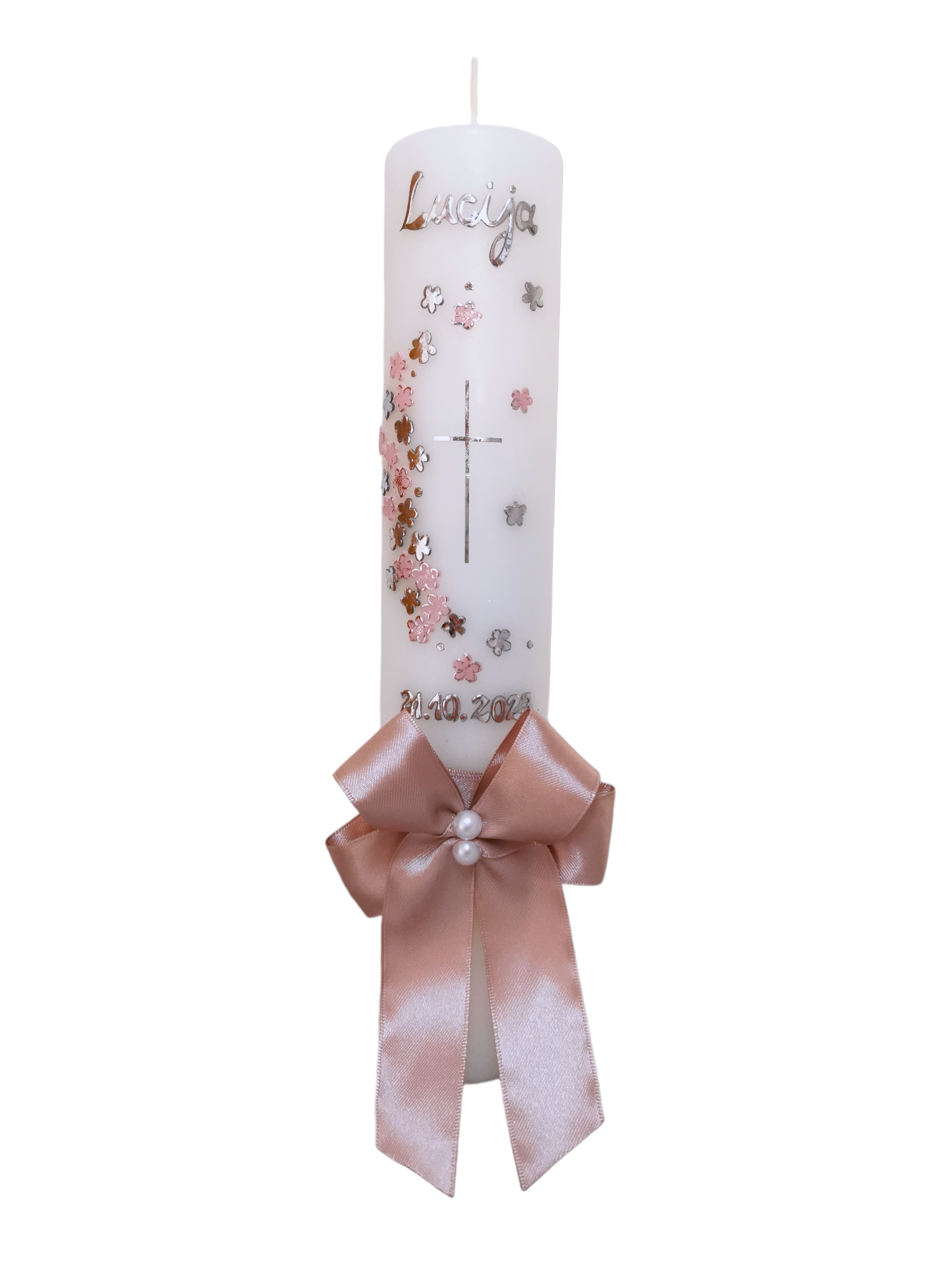 Svijeća: napravljena je od kvalitetnog parafinskog voska, ručno rađenih ukrasa i detalja prilagođenim Vama kako bi Vašem djetetu ostala trajna uspomena na tako poseban i velik dan!
