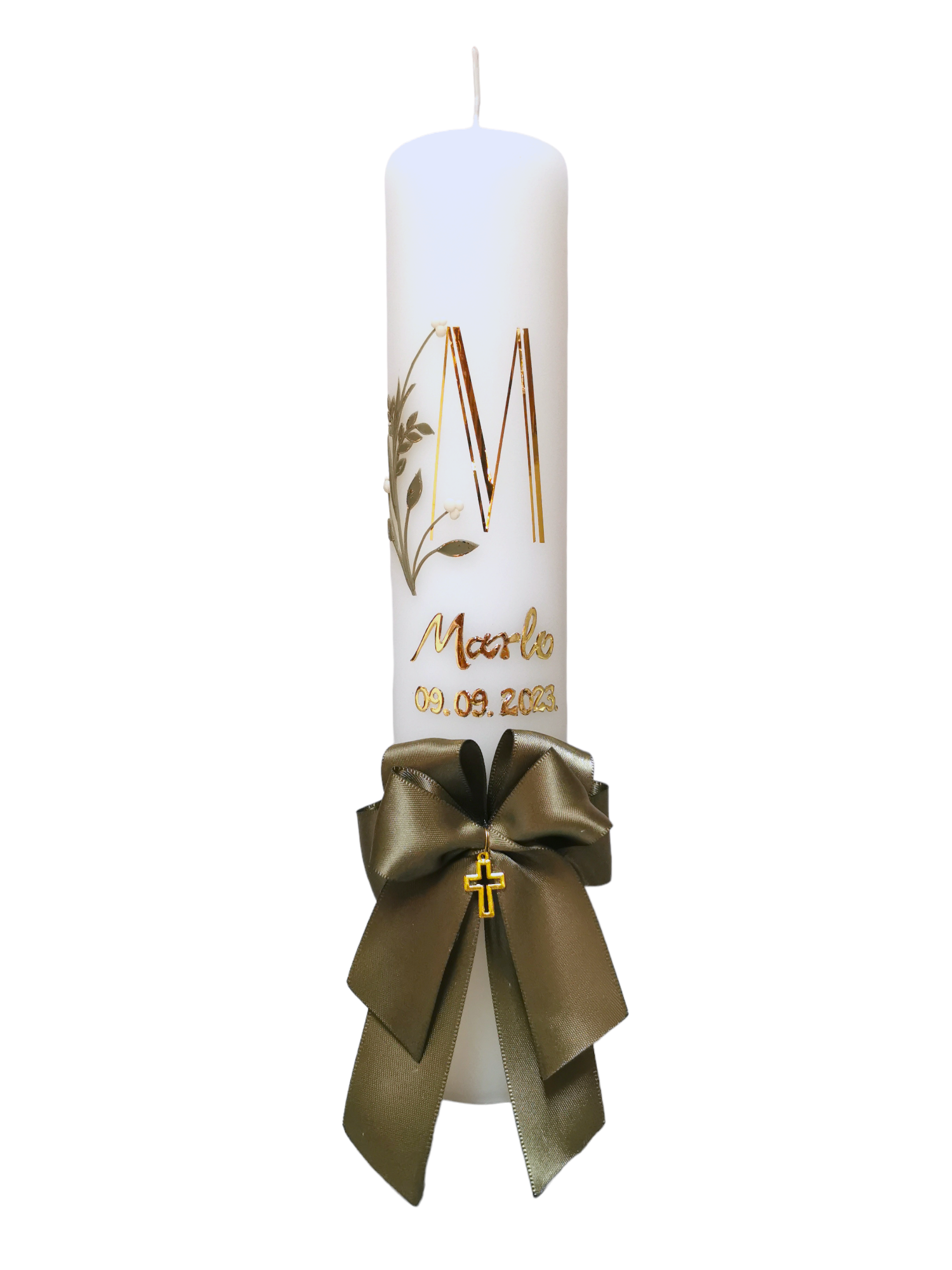 Svijeća: napravljena je od kvalitetnog parafinskog voska, ručno rađenih ukrasa i detalja prilagođenim Vama kako bi Vašem djetetu ostala trajna uspomena na tako poseban i velik dan!