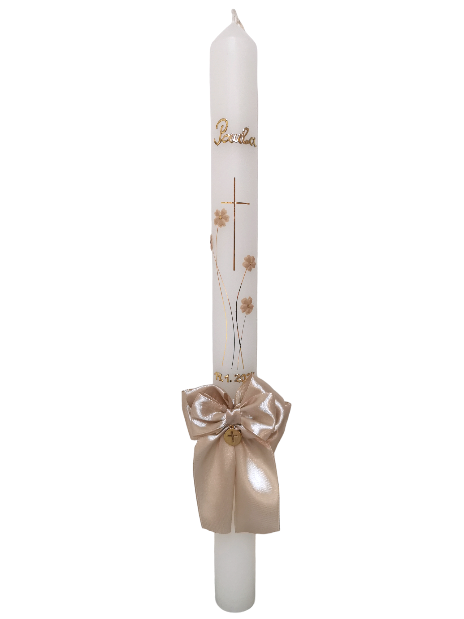 Svijeća: napravljena je od kvalitetnog parafinskog voska, ručno rađenih ukrasa i detalja prilagođenim Vama kako bi Vašem djetetu ostala trajna uspomena na tako poseban i velik dan!