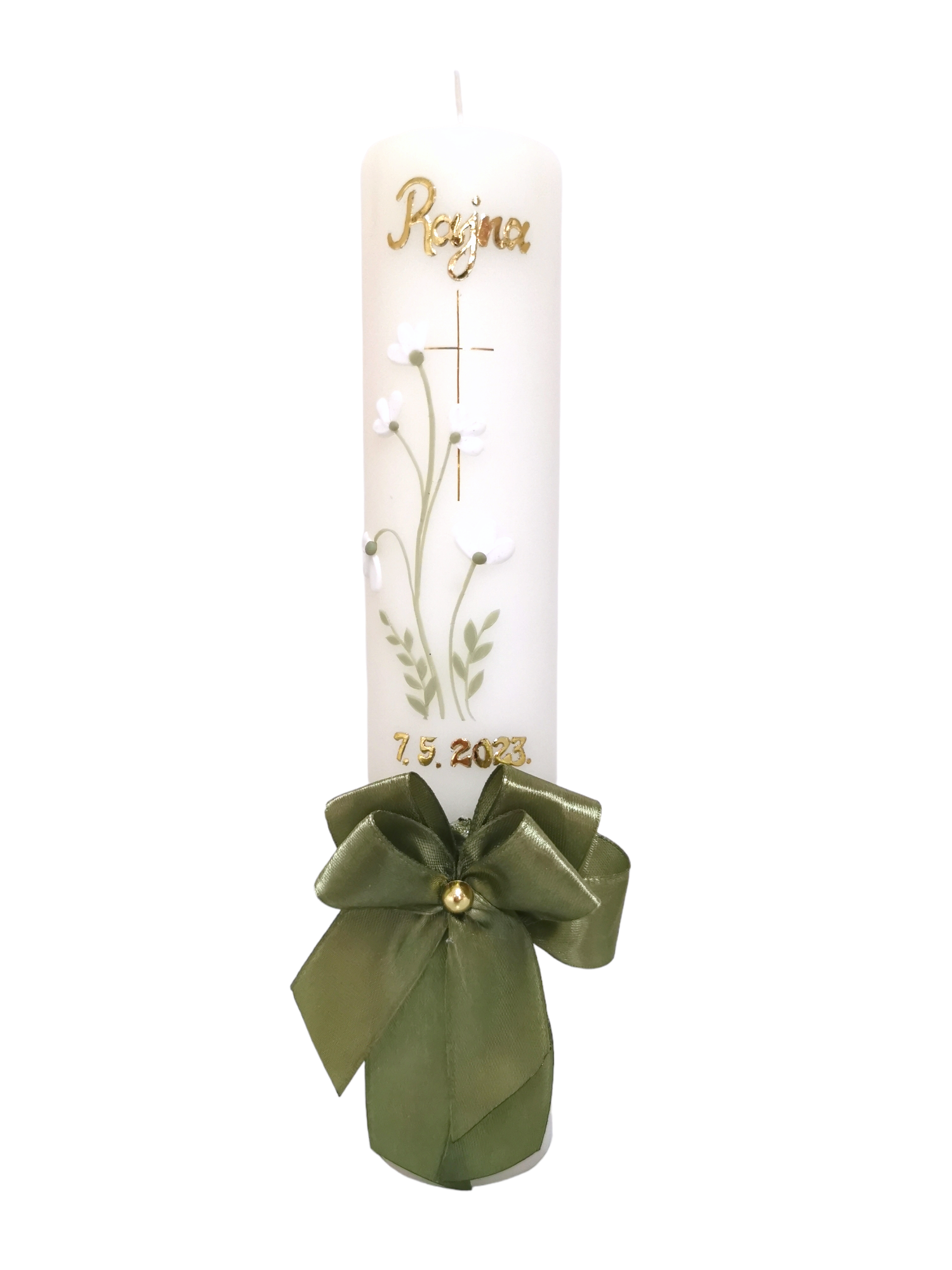 Svijeća: napravljena je od kvalitetnog parafinskog voska, ručno rađenih ukrasa i detalja prilagođenim Vama kako bi Vašem djetetu ostala trajna uspomena na tako poseban i velik dan!