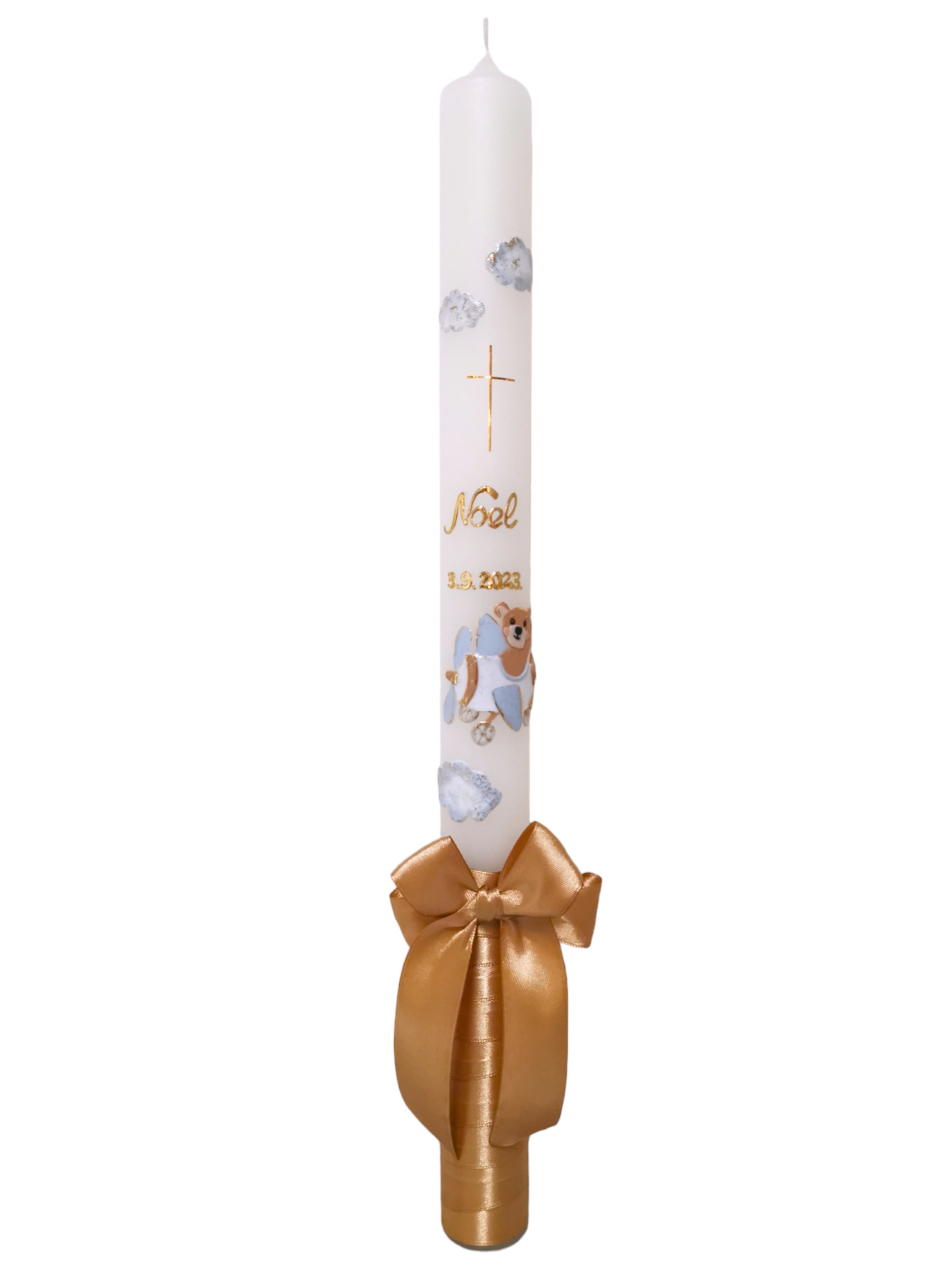Svijeća: napravljena je od kvalitetnog parafinskog voska, ručno rađenih ukrasa i detalja prilagođenim Vama kako bi Vašem djetetu ostala trajna uspomena na tako poseban i velik dan!