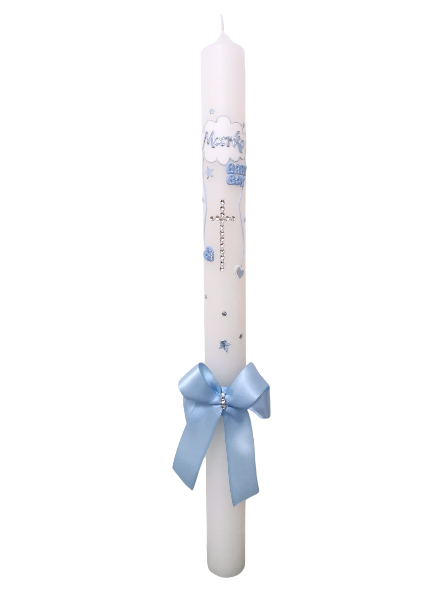 Budite spremni za velik dan Vašeg mališana. Izaberite između velike ponude svijeća za krštenje, krsnih kompleta ili pak izaberite svaki proizvod pojedinačno. Sve naše svijeće za krštenje, kao i pojedinačni proizvodi proizvodi nude velik broj opcija, od motiva, boja pa sve do natpisa. Tako možete birati razne motive na krsnim košuljicama i rupčićima, natpise različitih boja, te boje koje će se nalaziti na svijeći. Naše krsne svijeće ručni su rad, te svaka od njih može biti personalizirana i jedinstvena. Sve zbog toga kako bi Vi mogli izabrati savršen krsni komplet za Vaše dijete.